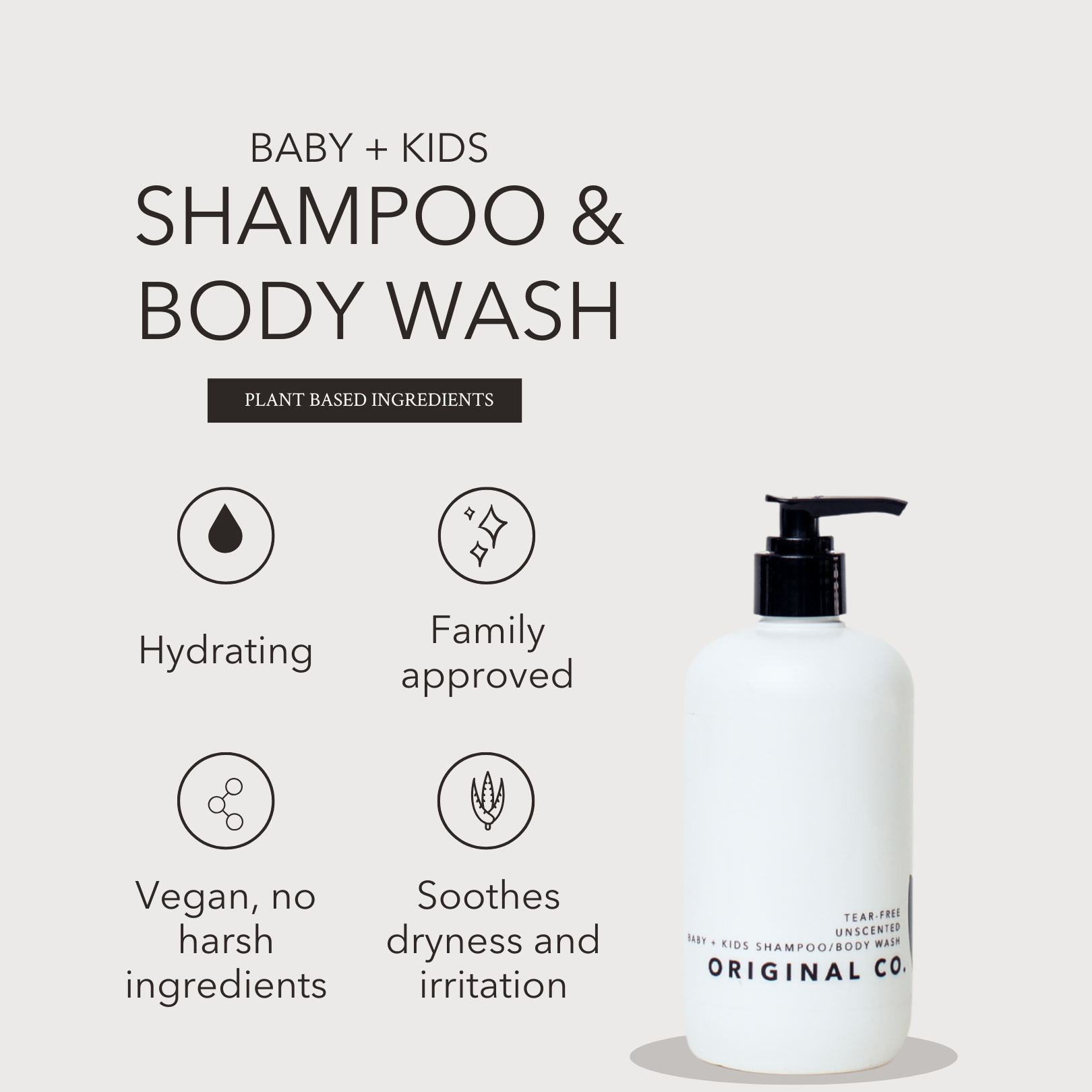 Our Baby + Kids Gentle Shampoo and Body Wash is a tear-free, unscented formula made with natural, vegan ingredients to keep little ones fresh from head to toe. Specially designed for newborns, babies, and kids with sensitive skin, this 2-in-1 cleanser gently removes dirt while helping to hydrate, soften, and protect the skin’s natural barrier.